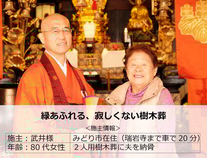 それと瑞岩寺の樹木葬は俗名で名前を残してくれるから、これから墓参りに来る孫たちにも主人の名前を覚えてもらえるだろうと思いましたね。